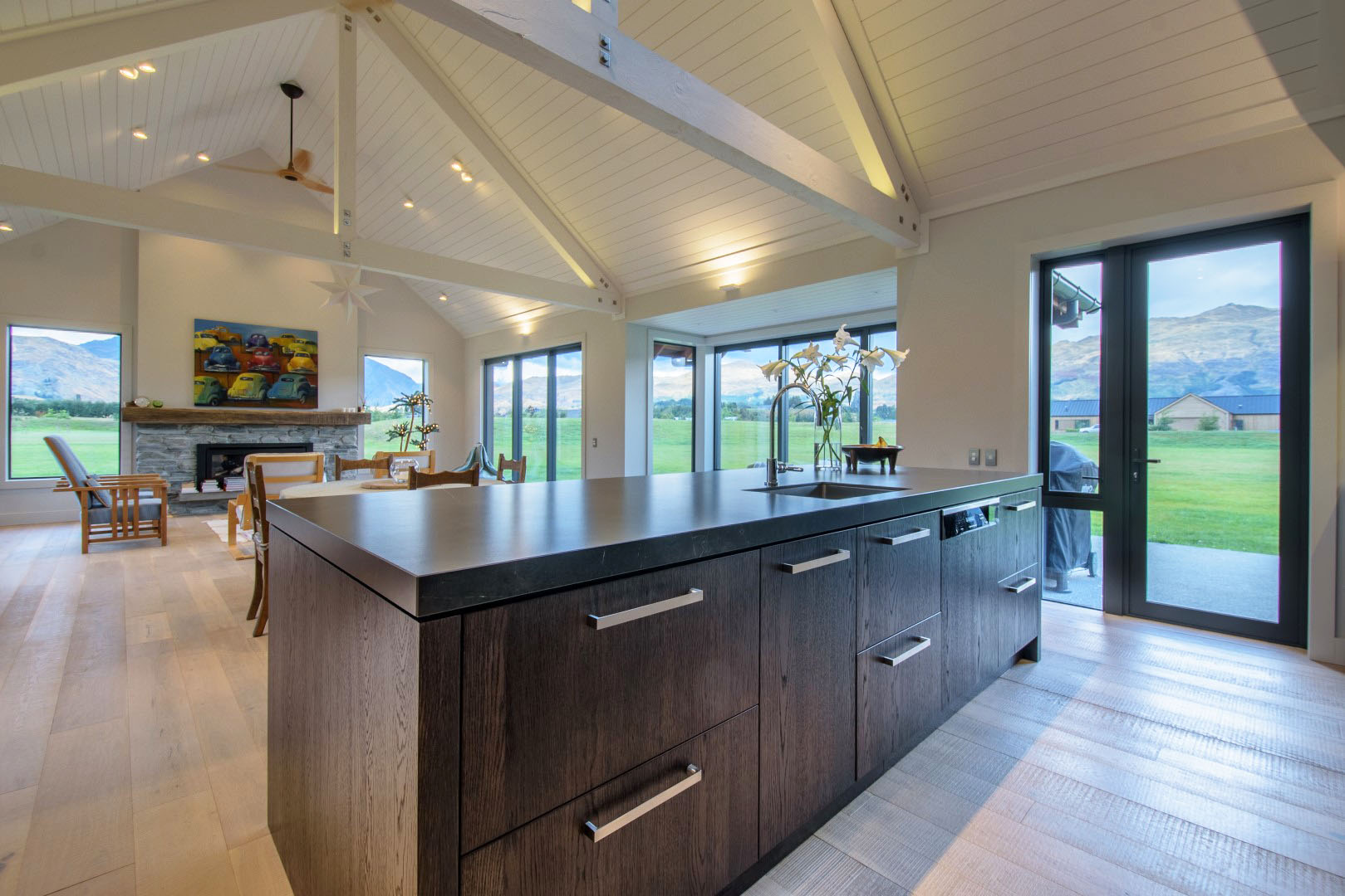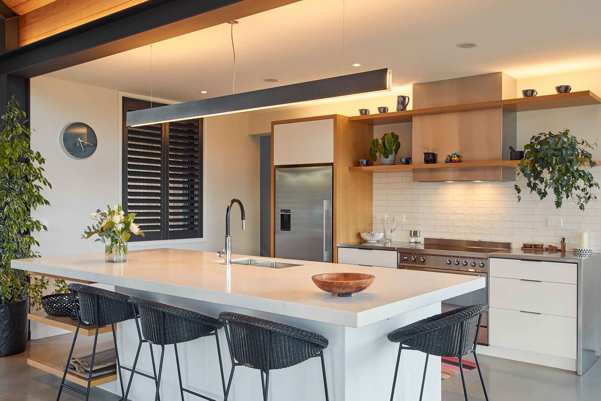 Insulated to more than two-times code requirements and with extensive triple glazing, views can be appreciated from any space, be it either of the two open-plan living areas, the simple – but altogether stunning – kitchen, or each of the four bedrooms. The three bathrooms are an amalgam of clean, elegant lines, with beautiful tiling and joinery.