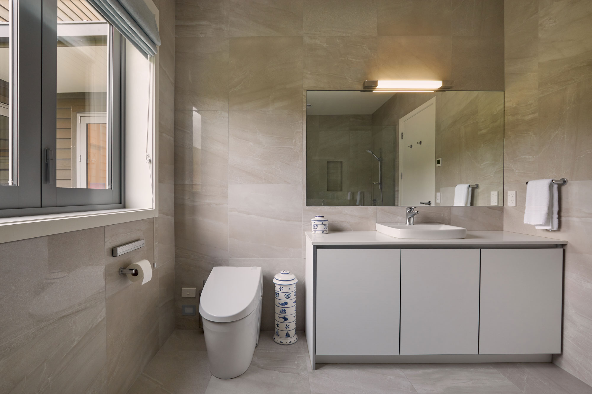 A simple design has allowed for added spending on designer finishes, expansive glazing and cedar and schist elements. An integrated Bosch heat pump underfloor heating warms from the ground up and the integrated hot water supply system makes efficient use of the energy input. Superior insulation creates an airtight environment that keeps the warmth in. This beautiful home stays extra cosy in winter with incredibly low heating costs.